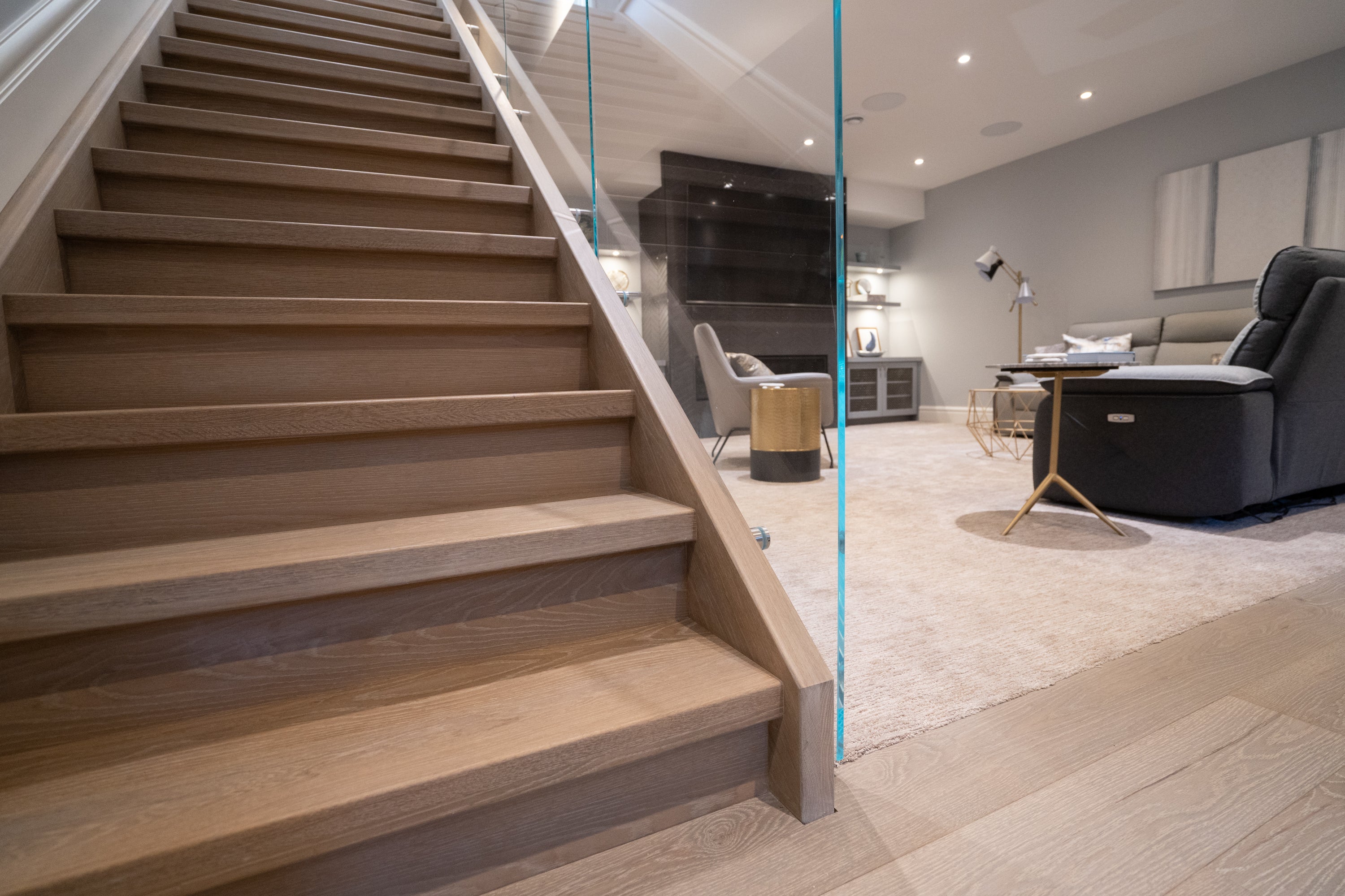 Airwood Matchable Staircase solutions are designed to simplify staircase installations by using pre-finished hardwood flooring and 5 axis CNC technology. Creating stair treads from the floor so it matches the floor. Custom without the price tag.