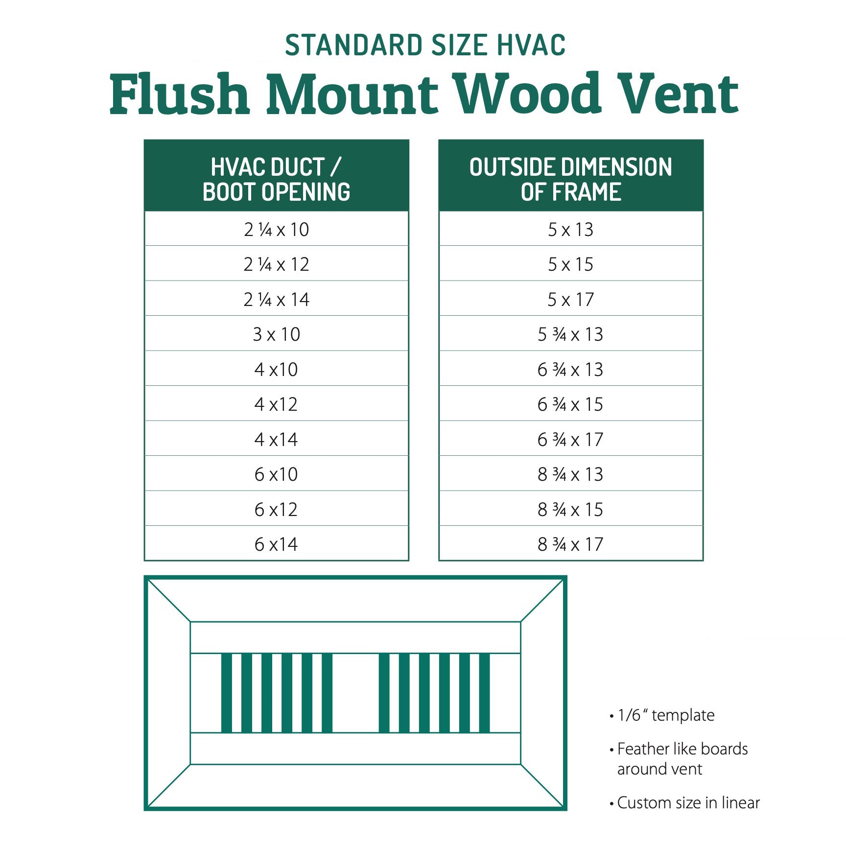 A truly artisan product hand crafted in all standard HVAC sizes. These wood vents are carefully crafted to enhance the look of your hardwood floor. Although they are meant to disappear in your floor, the craftsmanship and attention to detail will stand out.